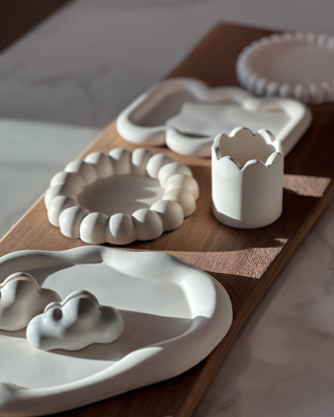 You’ll find a rotating selection of trays, card holders, and seasonal gift sets.