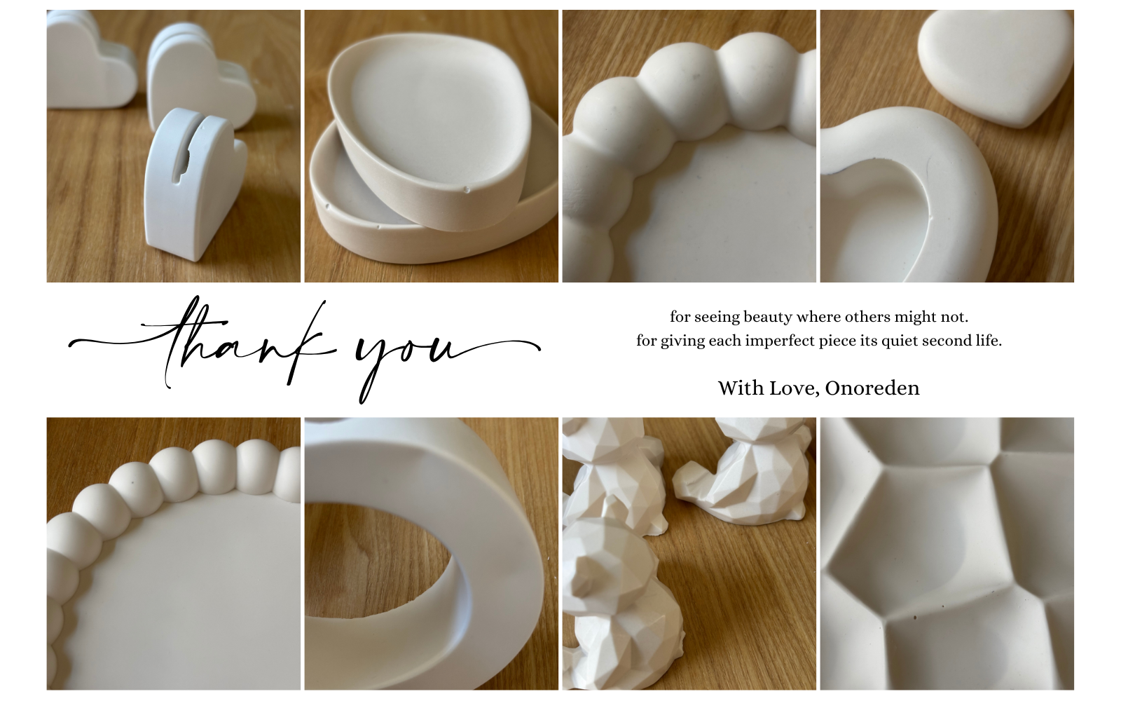 Pieces with quiet imperfections — still full of charm and purpose.