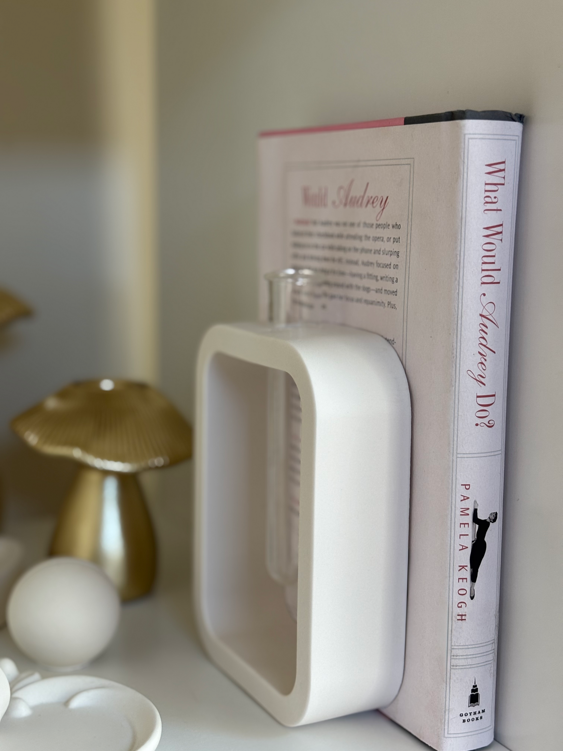 A quiet frame for your floral or greenery moments. With its clean rectangular silhouette and soft matte finish, Frame offers a modern yet warm presence for your shelf, bedside, or workspace. The removable clear tube makes it easy to arrange single stems—whether it’s a bloom, a leaf, or a wild branch. Its open shape lets light pass through, casting gentle shadows that shift with the day.