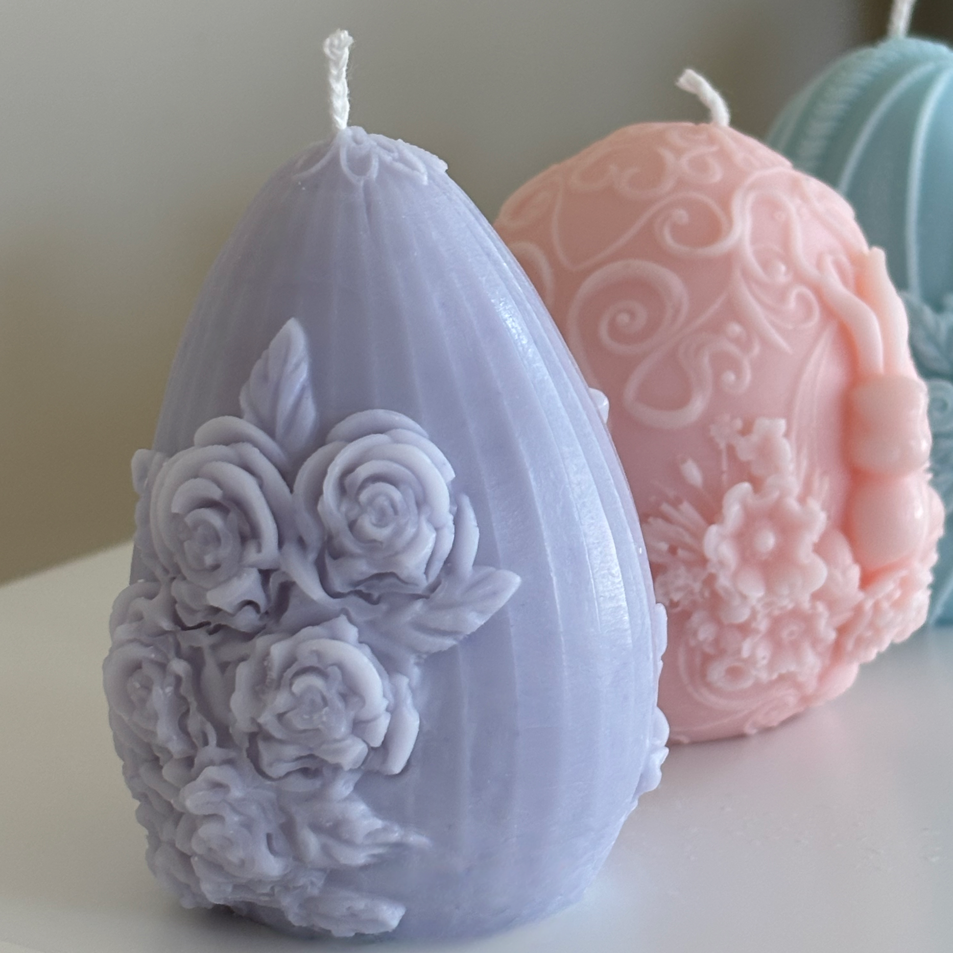 A complete pastel collection of our sculpted Easter egg candles.